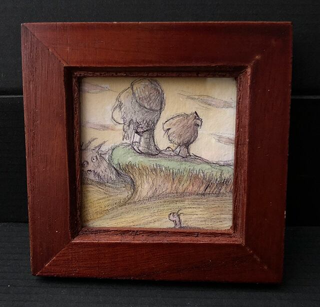 夕焼け砂丘に跳ねる砂魚をみつめる二人